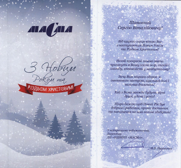 «Пусть с Вами всегда будут верные друзья, удача и успех», — директор ГП «Украинский научно-исследовательский институт нефтеперерабатывающей промышленности «МАСМА» Алексей Пшеничка.