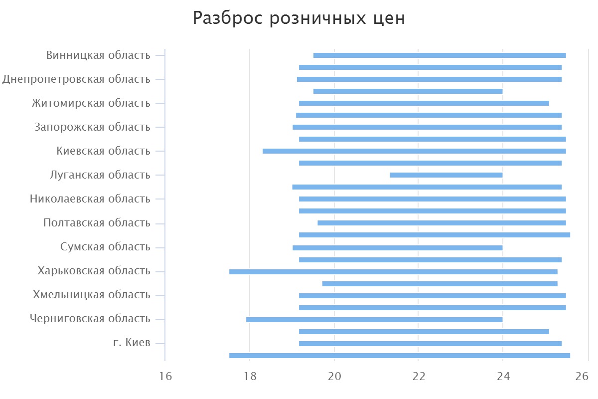 В Украине с 16 декабря по 23 декабря 2016 г. в розничной торговле наблюдался рост цены на дизельное топливо. В то же время стоимость бензинов не изменилась, а сжиженный газ подешевел.