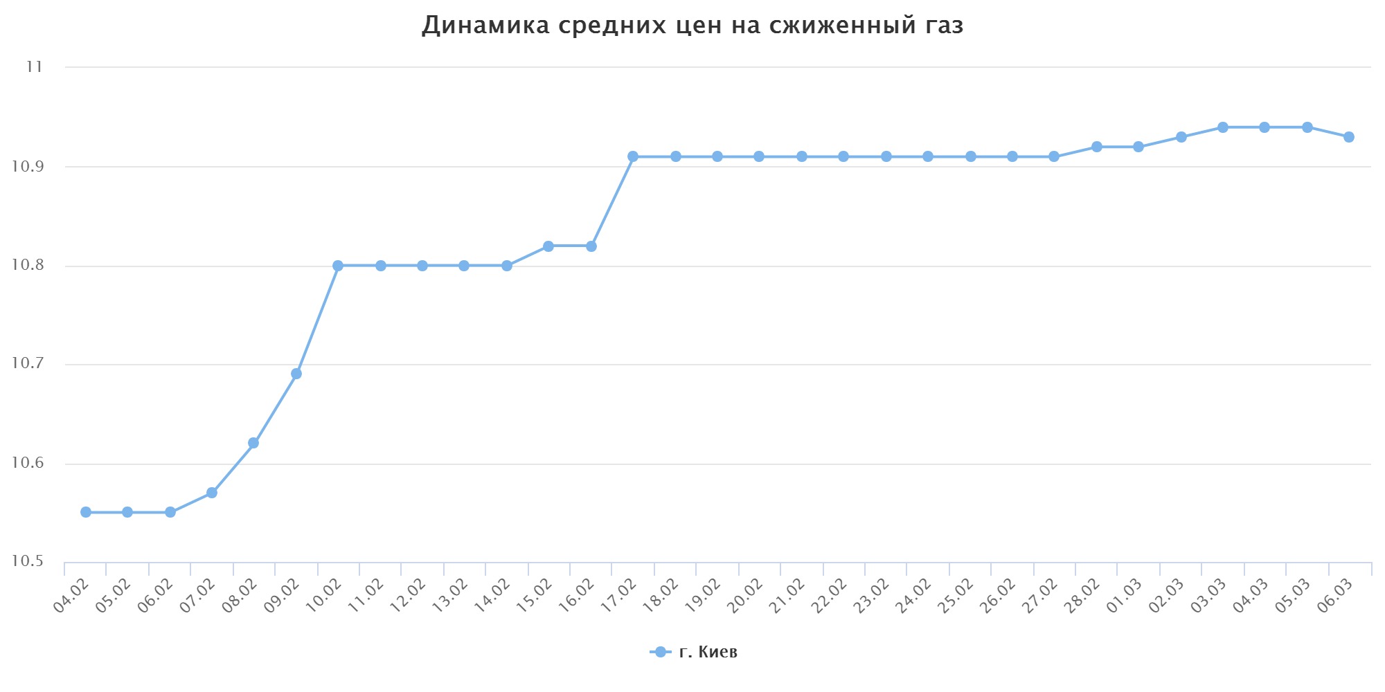 За период с 4 февраля по 6 марта 2017 года в г. Киеве  наблюдался рост розничных цен на светлые нефтепродукты, и сжиженный углеводородный газ, используемый в качестве моторного топлива.
