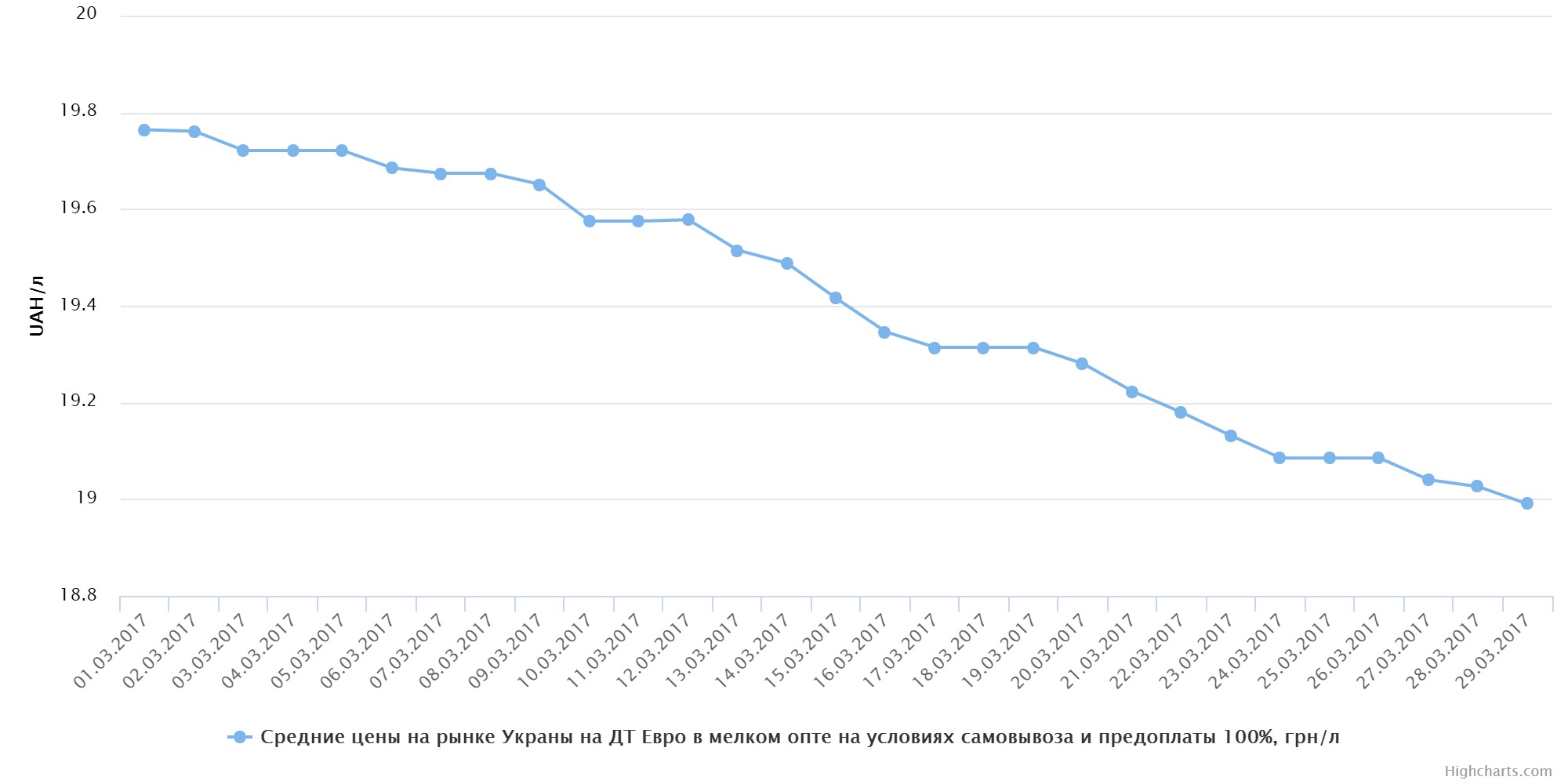 По результатам мониторинга рынка нефтепродуктов в Украине 29 марта 2017 г в рознице отмечался рост стоимости бензина А-95 евро и снижение цены СПБТ, а в мелком опте — падение цен на светлые нефтепродукты и рост цены сжиженного газ.