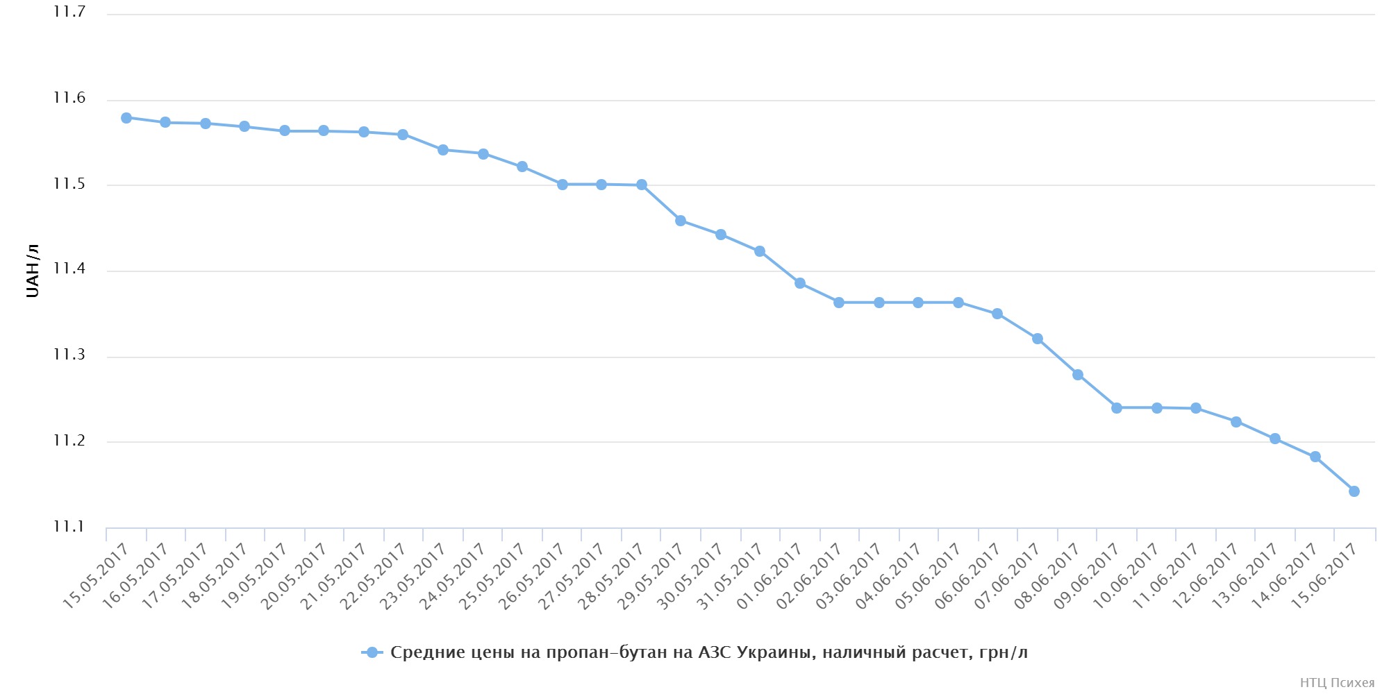 Сжиженный нефтяной газ СПБТ, используемый в качестве моторного топлива, за 15 июня 2017 г. подешевел на 0.36% (4 коп/л) до 11.14 грн/л. Доля цены на сжиженный нефтяной газ по отношению к высокооктановому бензину составляет 44%.
