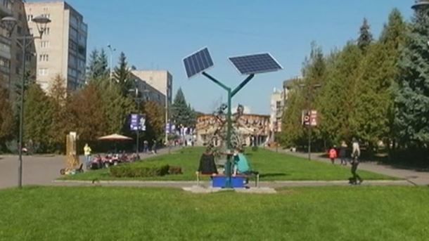 В Краматорске (Донецкая обл.) изменен проект по установке бесплатных уличных зарядных станций для мобильных устройств: вместо лавочек с солнечными панелями будут установлены «солнечные деревья».