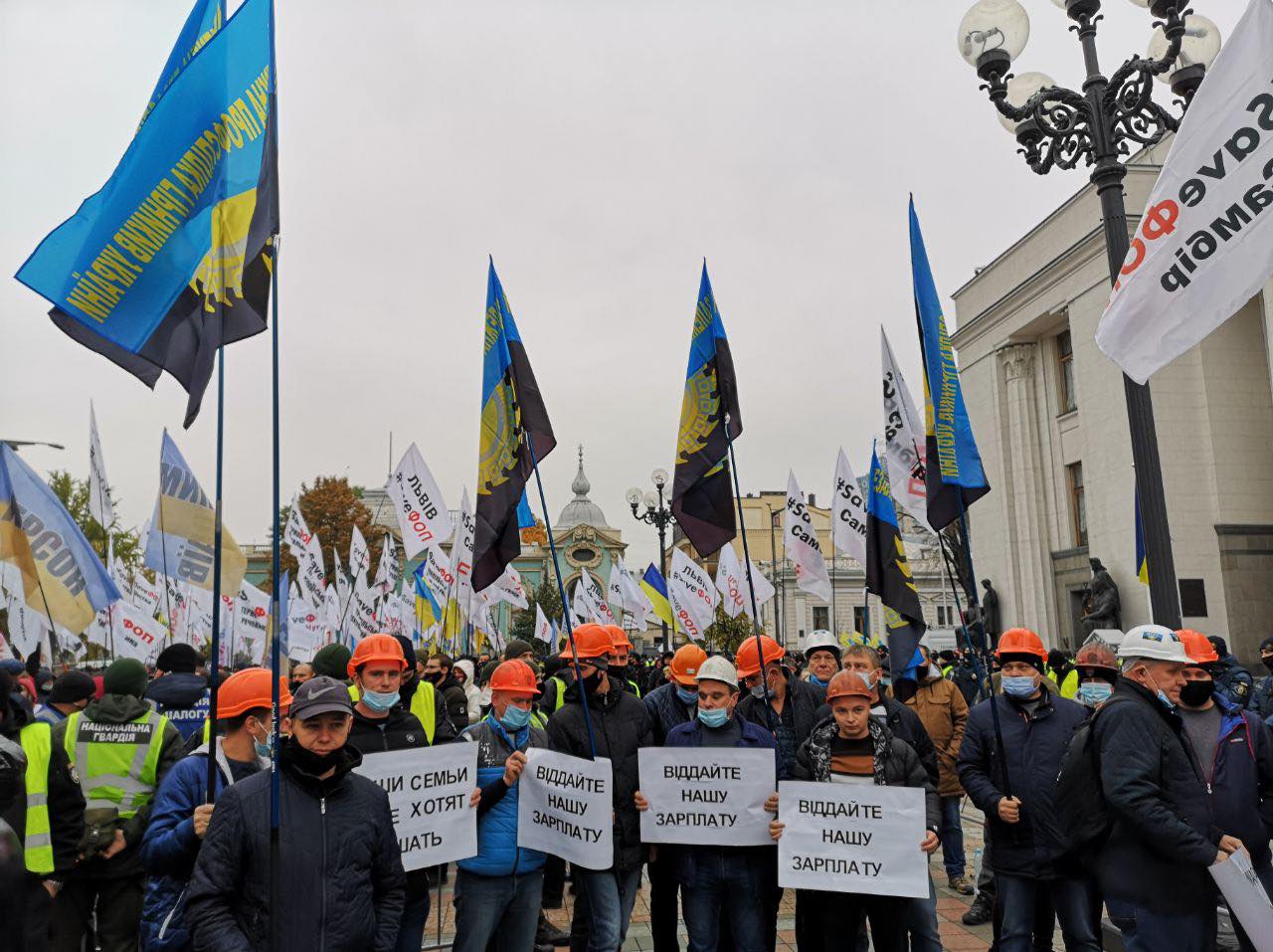Шахтеры государственных угледобывающих предприятий «Шахта им.Сургая» и «Южнодонбасская №1″ (Угледар, Донецкая обл.) проводят под Верховной Радой акцию протеста с требованием погасить задолженность по заработной плате.