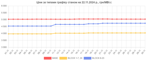 Станом на 22 листопада 2024 р. ціна базової електроенергії становила: